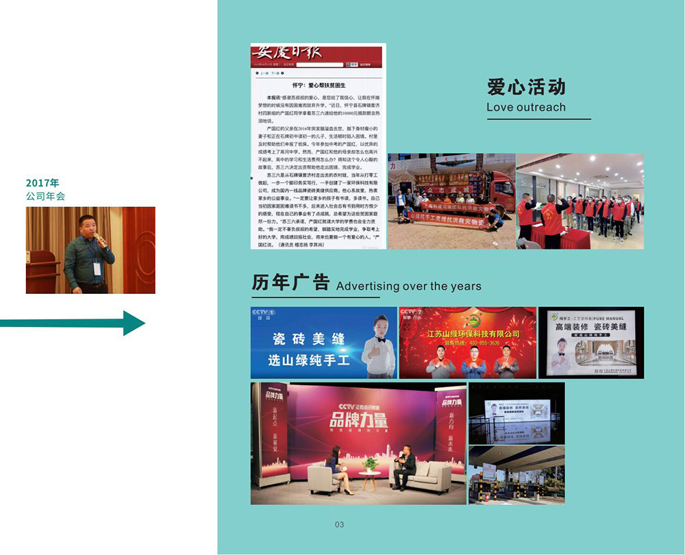 江南官方端网站登录入口注册资金1000万,专注于绿色环保建材产品的研发、生产和销售,以及施工工艺的培训。公司主要产品银离子纳米陶瓷泥、炫彩收边美容胶等产品,采用德国原料和纳米生产技术,解决了美缝施工后不久脱落、变黑等难题,山绿环保致力于成为“高端全屋360°美缝定制方案开拓者”,公司拥有自主创新的“收边胶施工工艺”等实用型发明专利多项。山绿环保还与上海科建股份有限公司联合推出纳米粘砖王、纳米砂浆宝、柔性防水等系列新型环保建材,保证产品的多元化、创新化!公司产品符合国家要求的环保和质量标准,并通过ISO9001国际质量管理体系认证,美缝系列产品...【了解详情】