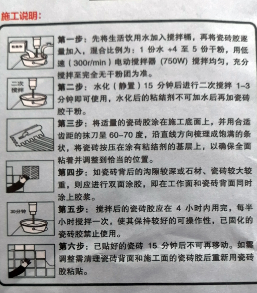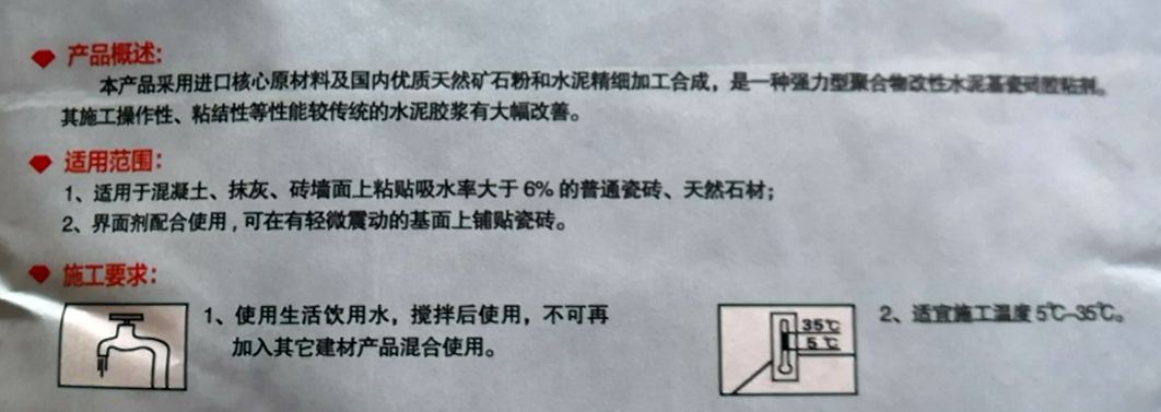 由于气候、施工方法等因素存在差异,在施工前或使用前首先要进行效果测试,达到预期效果才能广泛使用,产品使用后的效果因基层不同而定。本公司不承担由于不正确使用引起的任何损失的责任。施工请按照产品说明的指示进行,有关问题请咨询当地经销商或本公司技术服务。